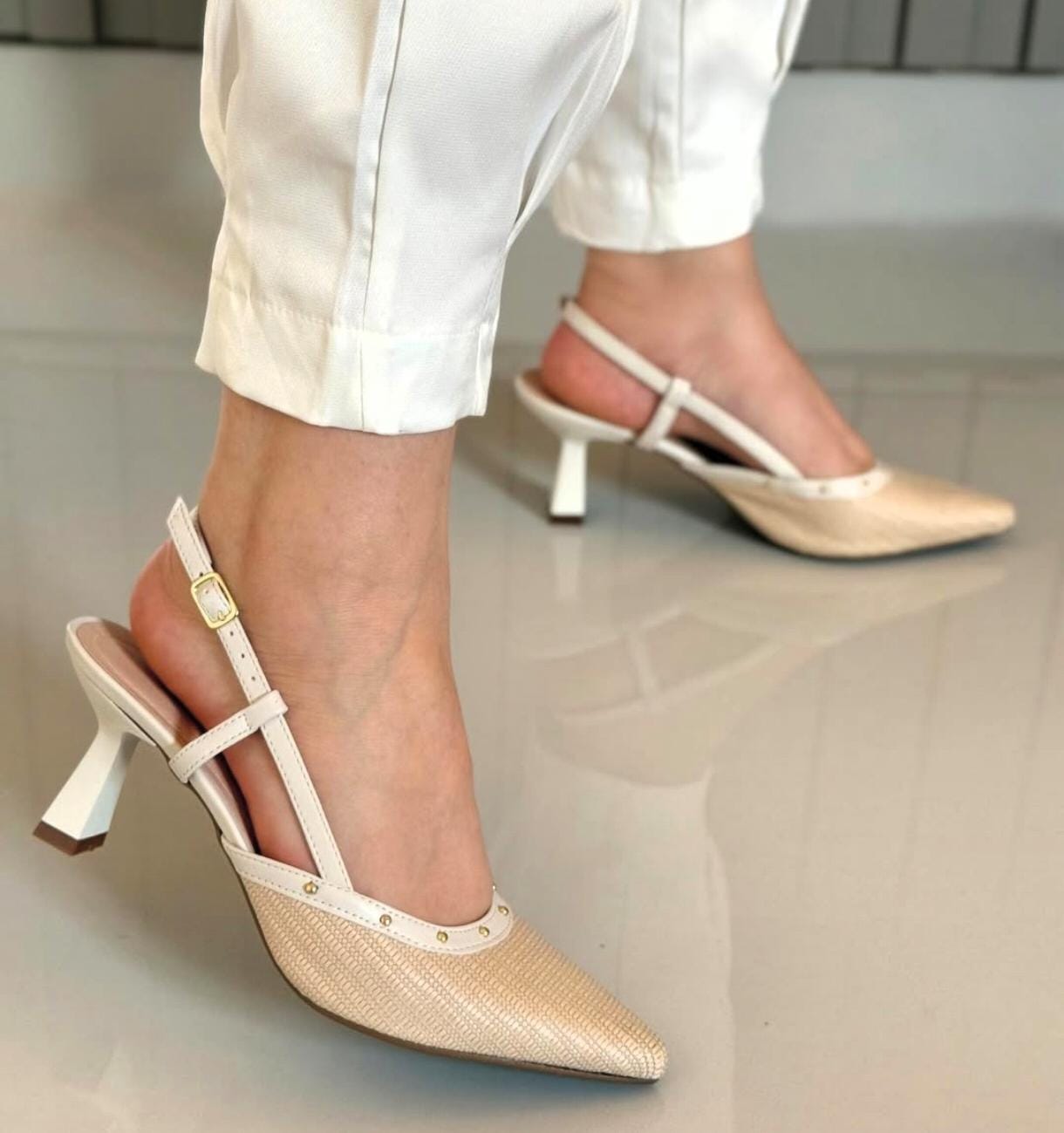 Scarpin em rafia com salto fino – Off white